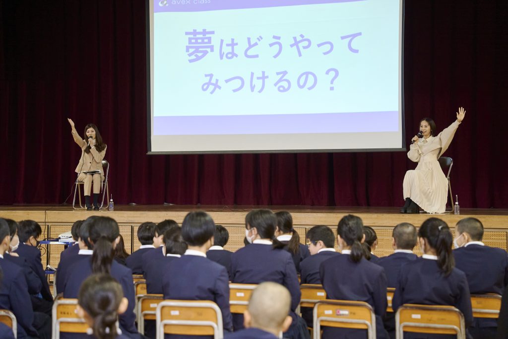 現在、歌手以外にも活躍の場を広げていることについては「DJや激辛料理など、興味のあることや好きなことを突き詰めて、自分で道を切り拓いていったら、仕事に繋がった。自分を客観的に見ることで、新しい発見や、チャレンジする気持ちが生まれてくる」と述べ、新たに挑戦することの楽しさややりがいを児童たちに熱く伝えました。